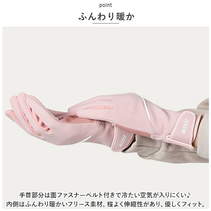 ・手首部分は面ファスナーベルト付きで冷たい空気が入りにくい♪内側はふんわり暖かいフリース素材。程よく伸縮性があり、優しくフィット。