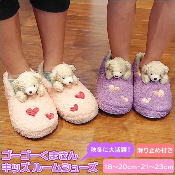 ルームシューズ 子供 もこもこ 通販 ルームスリッパ 子ども キッズ 冬 あったか あたたか かかと付き 防寒 暖かい ゴーゴーくまさん アニマル くま クマ 動物 子ども用スリッパ 子供用スリッパ ルームシューズ スリッパ