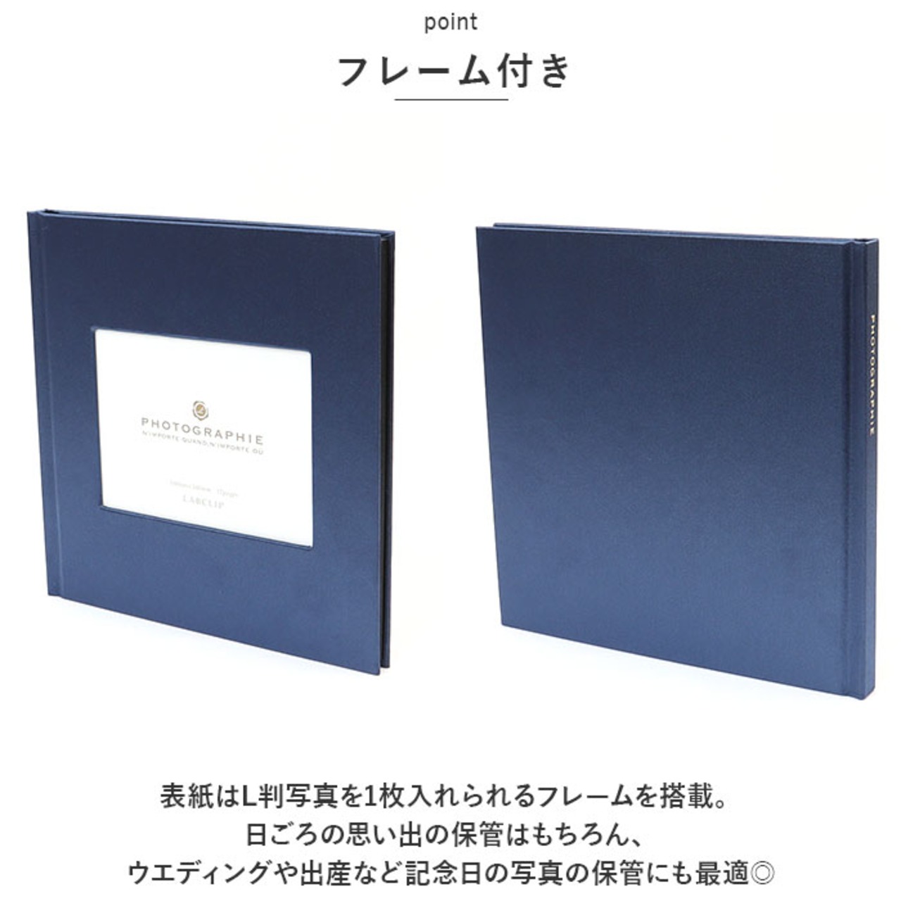 ・表紙はL判写真を1枚入れられるフレームを搭載。
