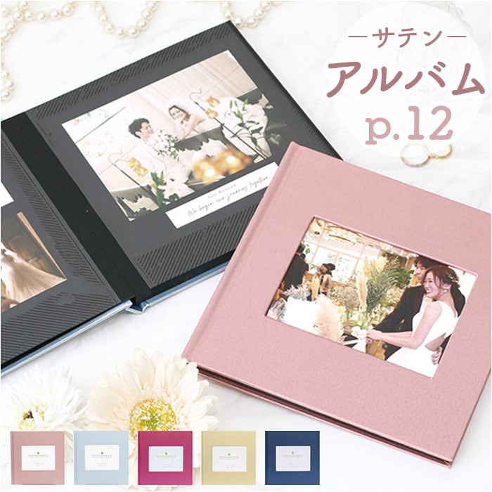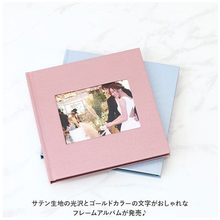 ・サテン生地の光沢とゴールドカラーの文字がおしゃれなフレームアルバムが発売♪