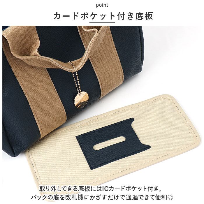 ・取り外しできる底板にはICカードポケット付き。バッグの底を改札機にかざすだけで通過できて便利◎