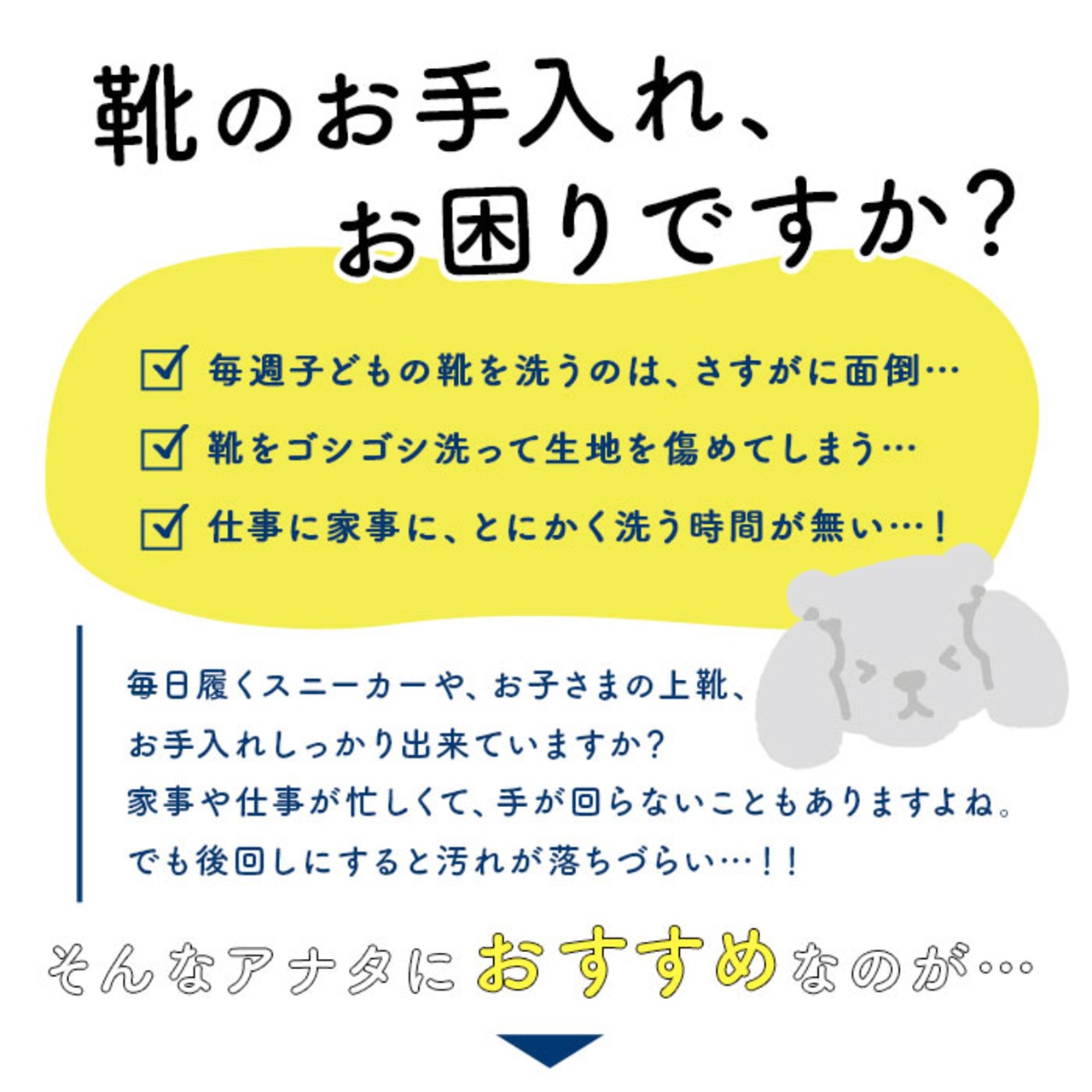 ・大人用:約1足(約27cm)、子供用:約2足。週末の家族のシューズ洗いも2枚あれば憂鬱な気分とサヨナラ。