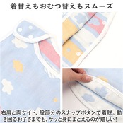 ・右肩と両サイド、股部分のスナップボタンで着脱。動き回るお子さまでも、サッと身にまとえるのが嬉しい!