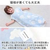 ・体を優しく包んでくれるスリーパー。掛け布団を蹴ってしまっても、寝冷えを防ぐことができるお助けアイテム◎お肌を傷つけないよう、タグは外側に配置。