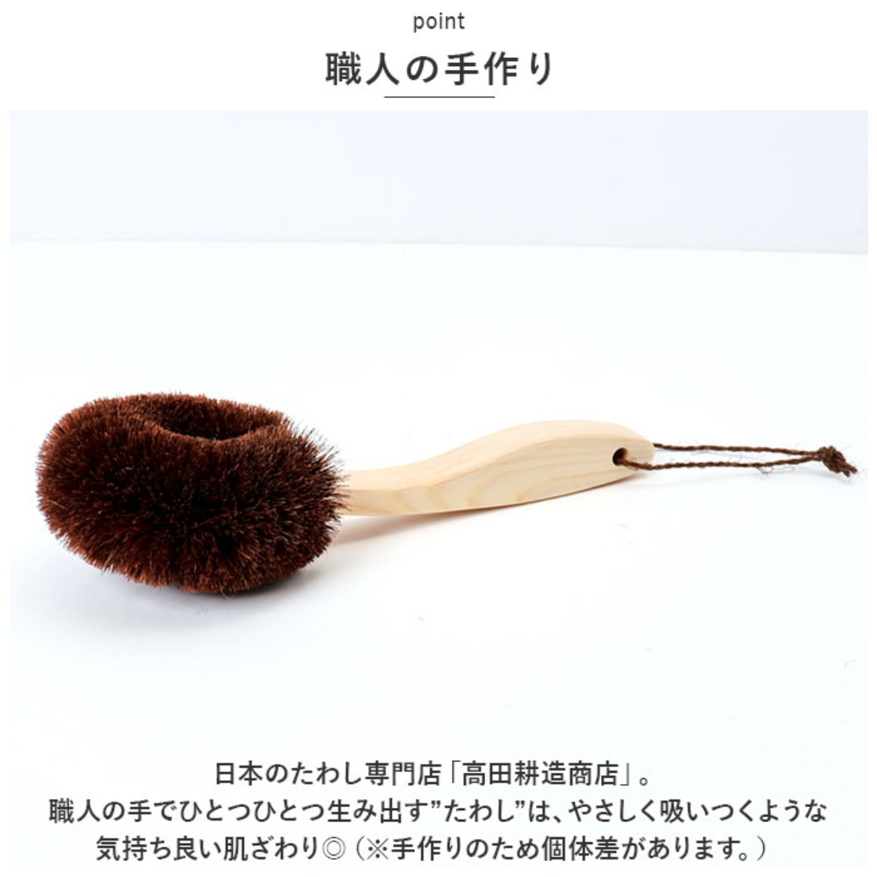 ・日本のたわし専門店「高田耕造商店」。職人の手でひとつひとつ生み出す”たわし”は、やさしく吸いつくような気持ち良い肌ざわり◎(※手作りのため個体差があります。)