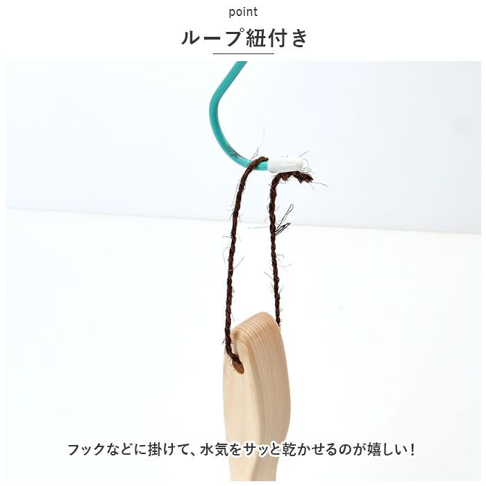 ・東濃檜(とうのうひのき)を1本ずつ削り出して作られた持ち手。小回りのきくサイズ感で、下から手を回すと背中にも届いて便利。
