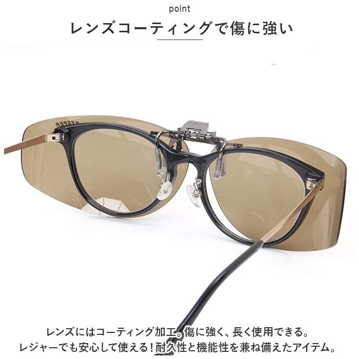 ・クリップを眼鏡に挟むだけでOK!サイドまでしっかりガード◎「クリップオンサングラス(ラージサイズ)」が登場。