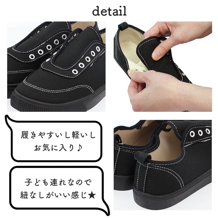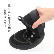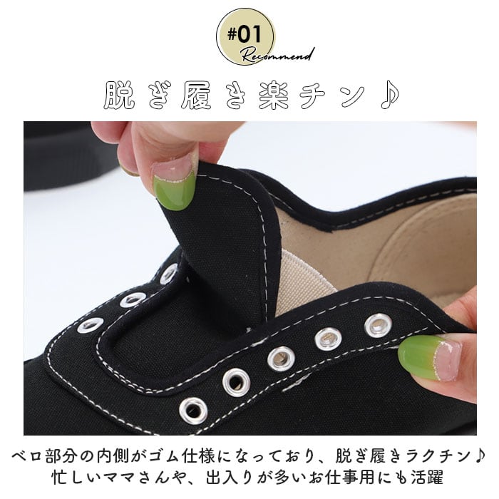 ・ベロ部分の内側がゴム仕様になっており、脱ぎ履きラクチン♪忙しいママさんや、出入りが多いお仕事用にも活躍。