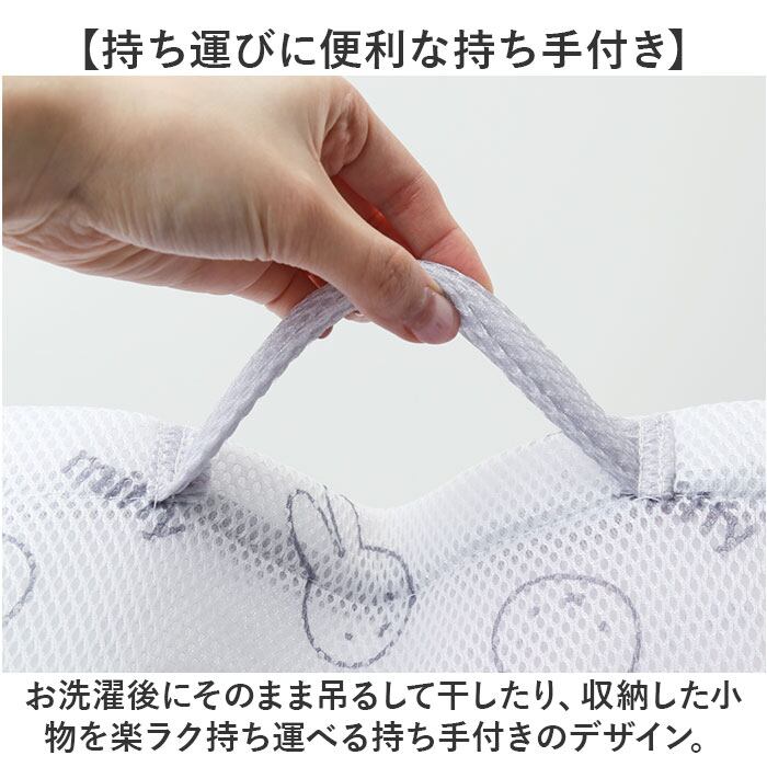 ・お洗濯後にそのまま吊るして干したり、収納した小物を楽ラク持ち運べる持ち手付きのデザイン。