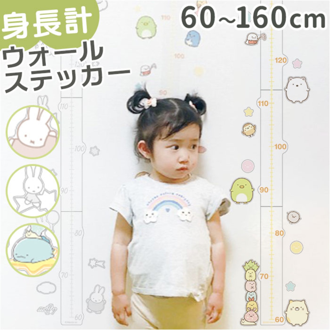 ・お子さまの成長を残せる身長ウォールステッカー。大好きなキャラクターと一緒に成長を楽しく記録。
