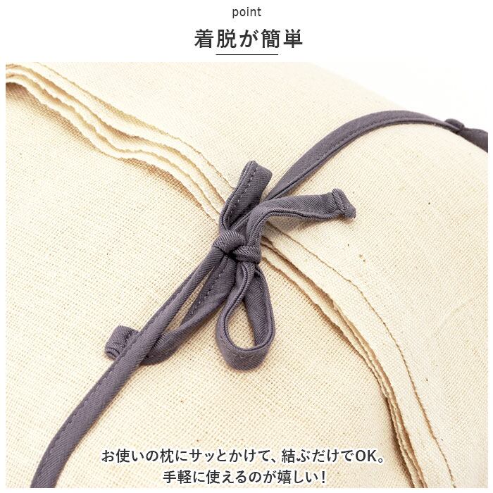 ・お使いの枕にサッとかけて、結ぶだけでOK。手軽に使えるのが嬉しい!
