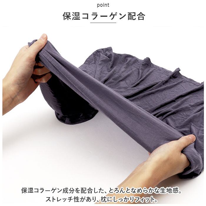 ・保湿コラーゲン成分を配合した、とろんとなめらかな生地感。ストレッチ性があり、枕にしっかりフィット。