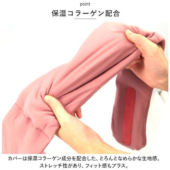 ・カバーは保湿コラーゲン成分を配合した、とろんとなめらかな生地感。ストレッチ性があり、フィット感もプラス。