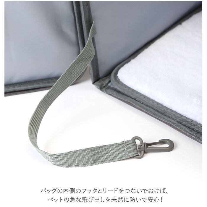 ・バッグの内側のフックとリードをつないでおけば、ペットの急な飛び出しを未然に防いで安心!