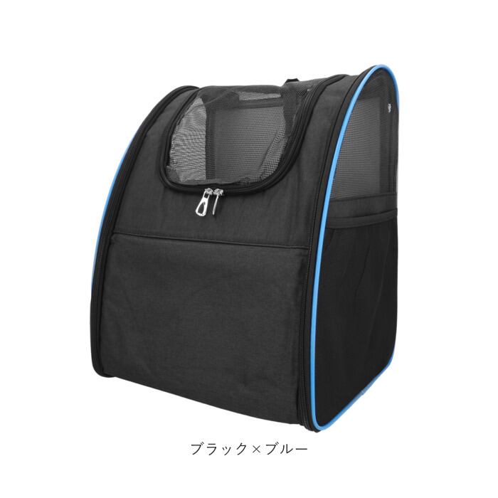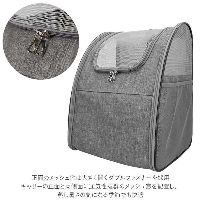 ・正面のメッシュ窓は大きく開くダブルファスナーを採用。キャリー側面は扉のように開閉するため、ペットの出入りがスムーズ。