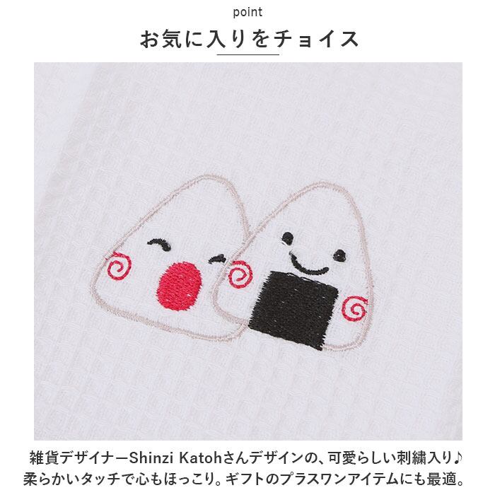 ・雑貨デザイナーShinzi Katohさんデザインの、可愛らしい刺繍入り♪柔らかいタッチで心もほっこり。ギフトのプラスワンアイテムにも最適。