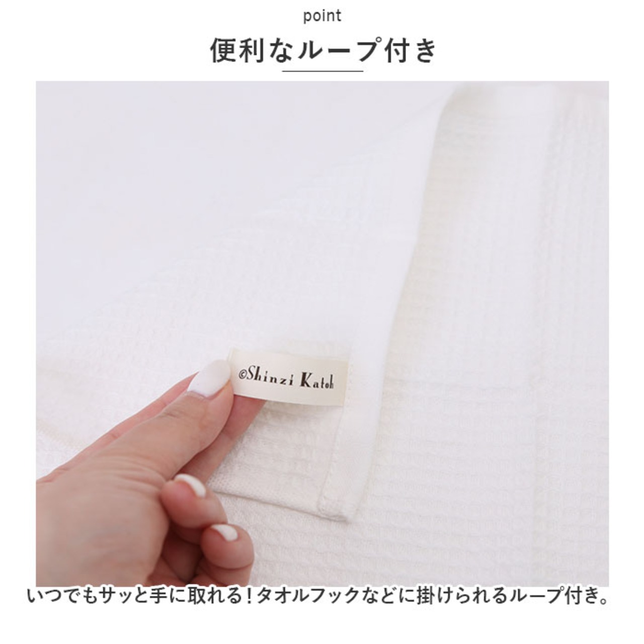 ・いつでもサッと手に取れる!タオルフックなどに掛けられるループ付き。