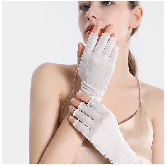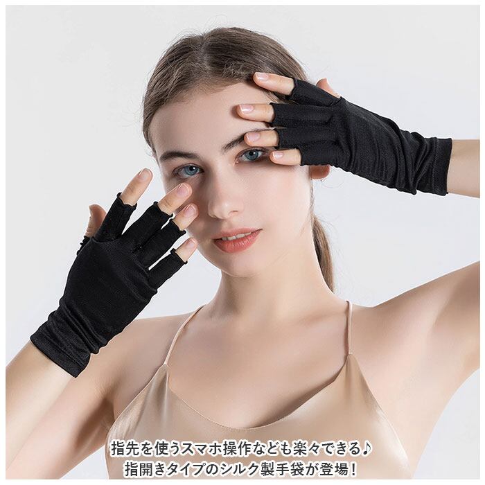 ・指先を使うスマホ操作なども楽々できる♪指開きタイプのシルク製手袋が登場!