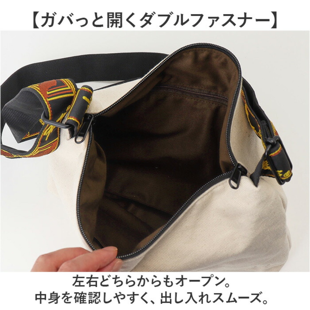 【ガバっと開くダブルファスナー】