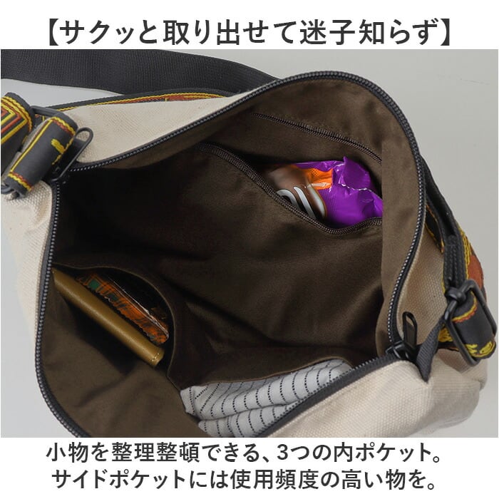 ・小物を整理整頓できる、3つの内ポケット。サイドポケットには使用頻度の高い物を。