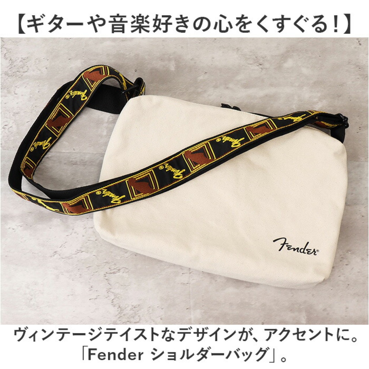 ・ヴィンテージテイストなデザインが、アクセントに。「Fender ショルダーバッグ」。