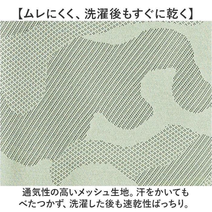 ・通気性の高いメッシュ生地。汗をかいてもべたつかず、洗濯した後も速乾性ばっちり。