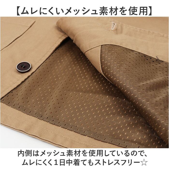 ・内側はメッシュ素材を使用しているので、ムレにくく1日中着てもストレスフリー☆