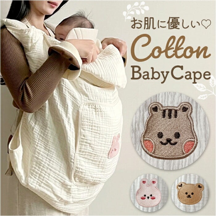 ・フード付きで赤ちゃんの頭から抱っこ紐ごとカバーできる作りで虫や日差し対策に最適☆