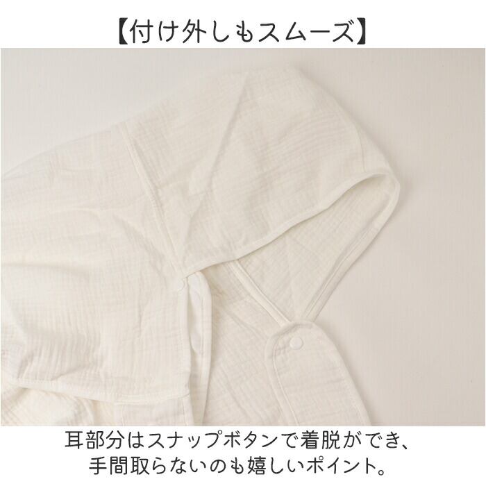 ・耳部分はスナップボタンで着脱ができ、手間取らないのも嬉しいポイント。