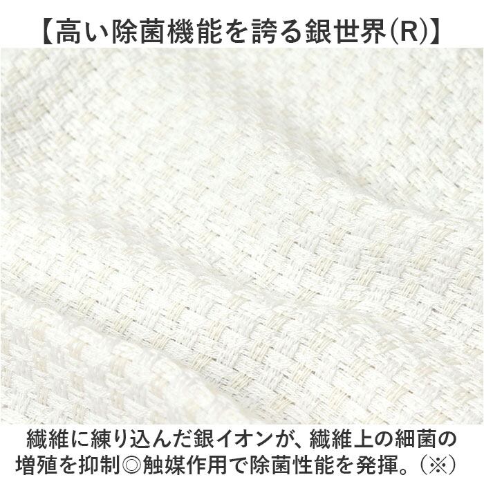 (※)銀世界(R)は東洋紡の機能性繊維です。光が当たると銀イオンの触媒作用により酸化酵素物質が生じ、除菌性能を発揮します。