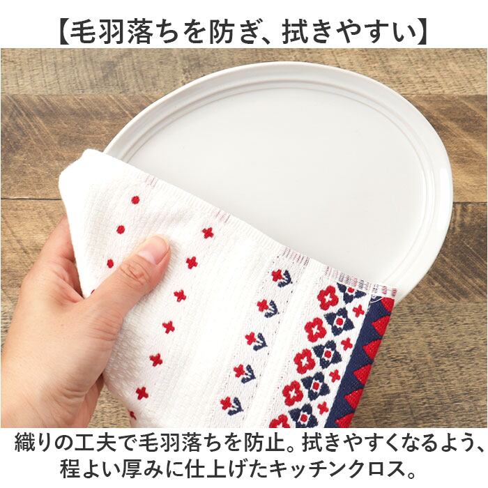 ・織りの工夫で毛羽落ちを防止。拭きやすくなるよう、程よい厚みに仕上げたキッチンクロス。