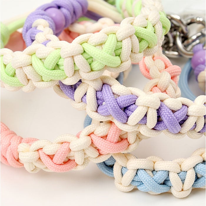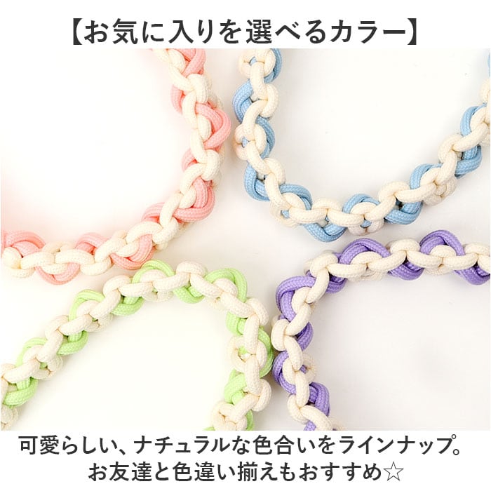 ・紐を結んで模様を作る、マクラメ編みのコード。2色をミックスし、可愛いアクセントに♪