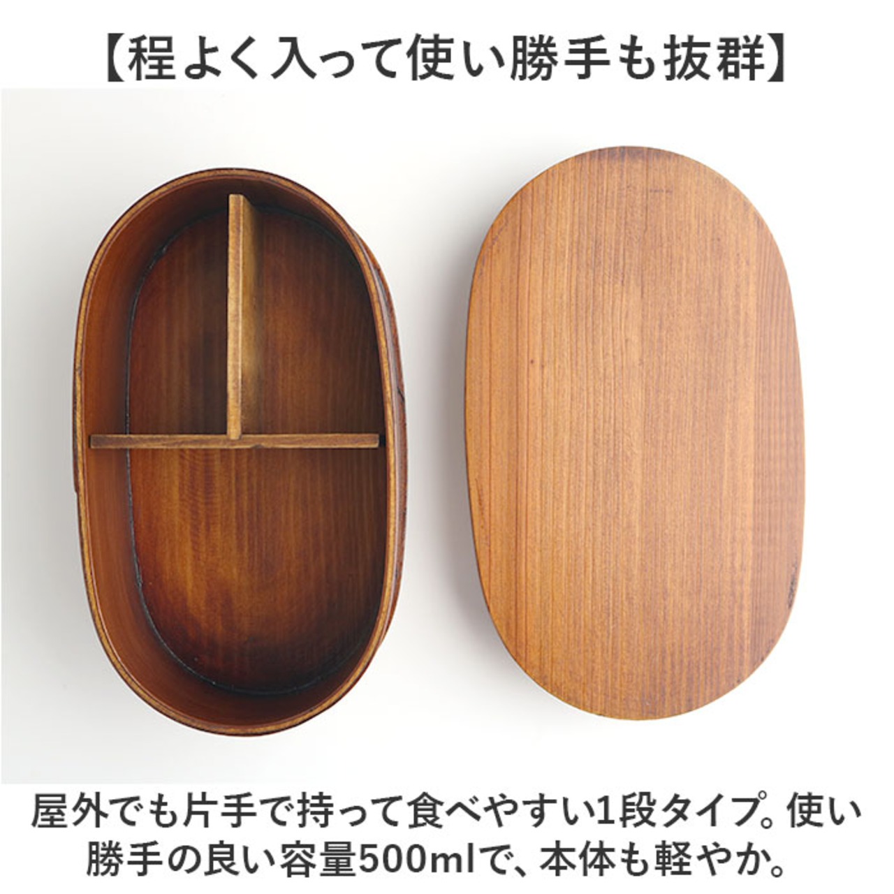・見栄えも美味しさもアップ!こだわりの天然杉使用、曲げわっぱ 小判型一段弁当箱 500ml