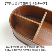 ・おかずが片寄りにくいT字の仕切り付き。ごはんにおかずの色や味が移るのを防止。