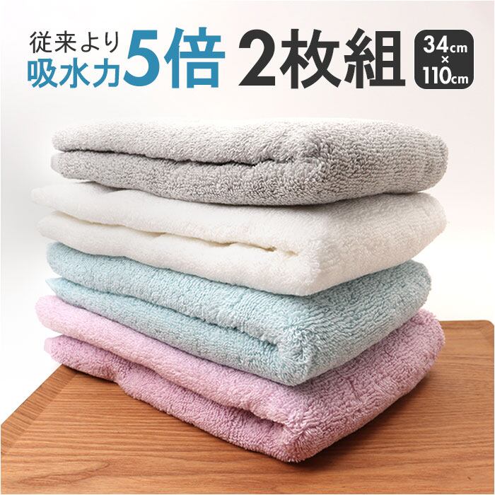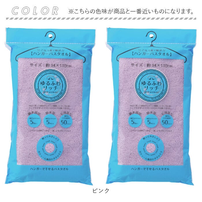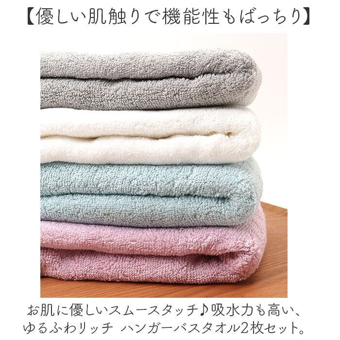 ・お肌に優しいスムースタッチ♪吸水力も高い、ゆるふわリッチ ハンガーバスタオル2枚セット。