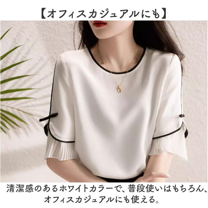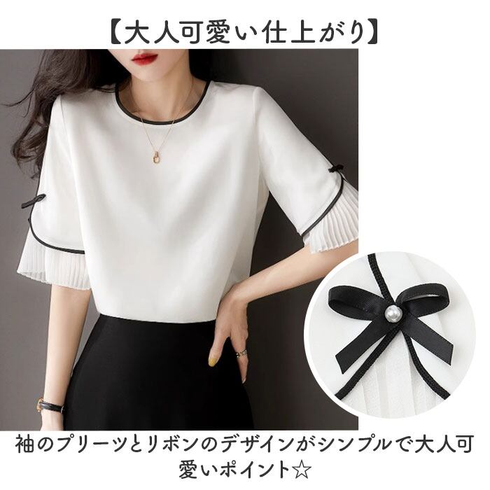 ・袖のプリーツとリボンのデザインがシンプルで大人可愛いポイント☆