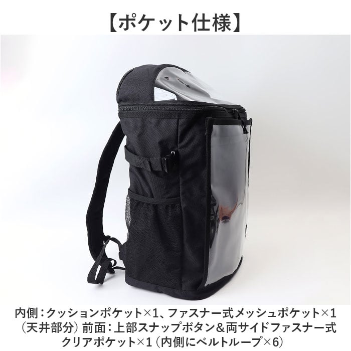 ・上部のクリアポケットは立体型。キャップやマスコットのフォルムを崩さず雨に濡れる心配もなし!