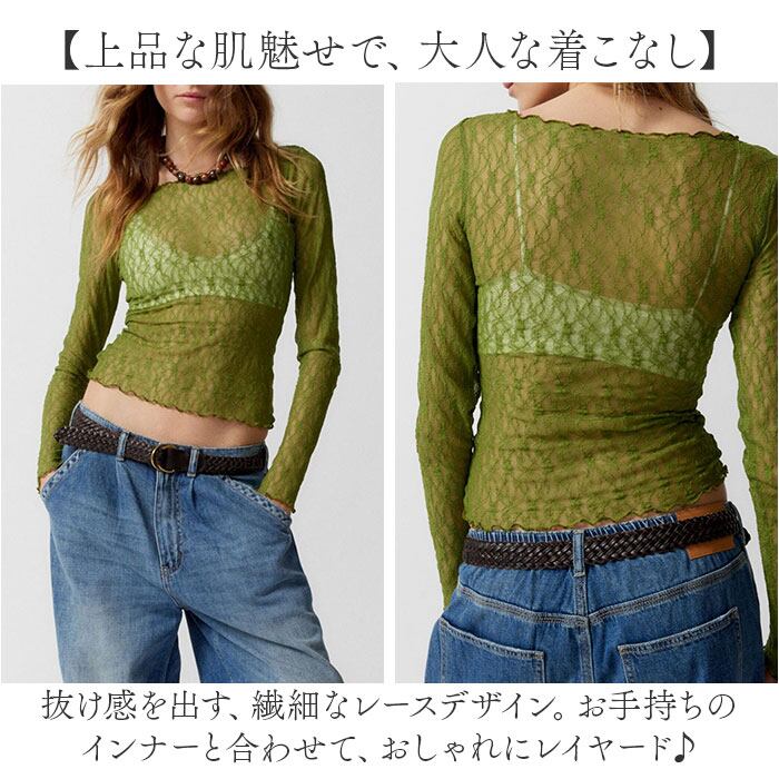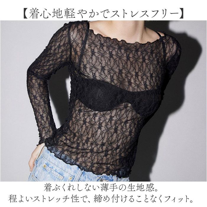 ・抜け感を出す、繊細なレースデザイン。お手持ちのインナーと合わせて、おしゃれにレイヤード♪