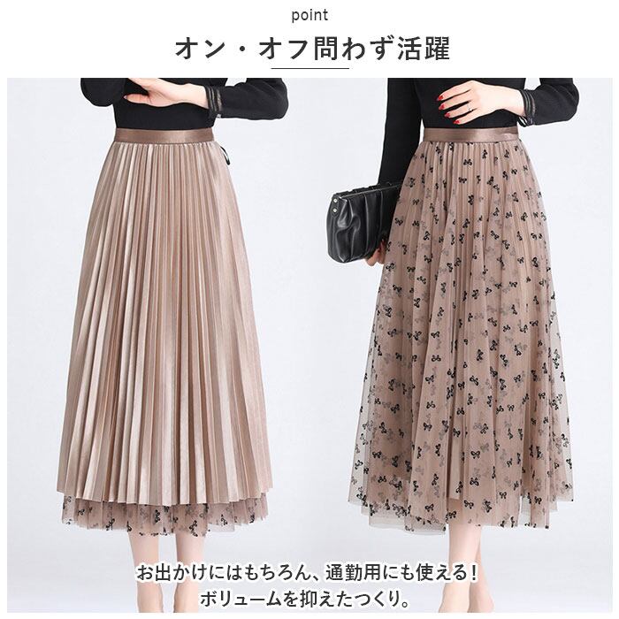 チュールスカート ロングスカート 通販 プリーツスカート ガーゼスカート プリーツ チュール ベール ハイウエスト ロング丈 ロング 体型カバー フォーマル きれいめ エレガント かわいい おしゃれ 大人