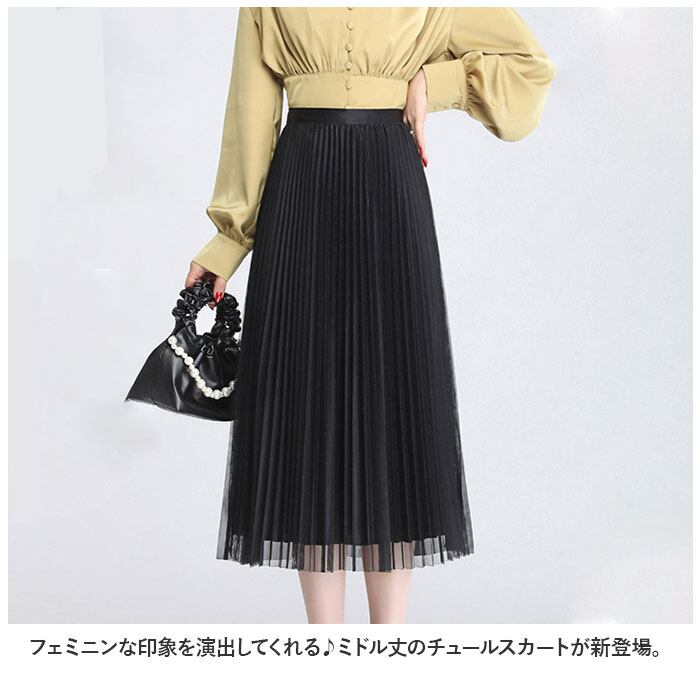 チュールスカート プリーツスカート スカート ミドル丈 通販 プリーツ メッシュスカート Aライン ベール ドレープ メッシュ ミドル ミドル丈 上品 エレガント きれいめ フォーマル かわいい おしゃれ 大人