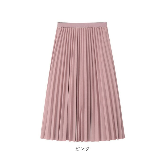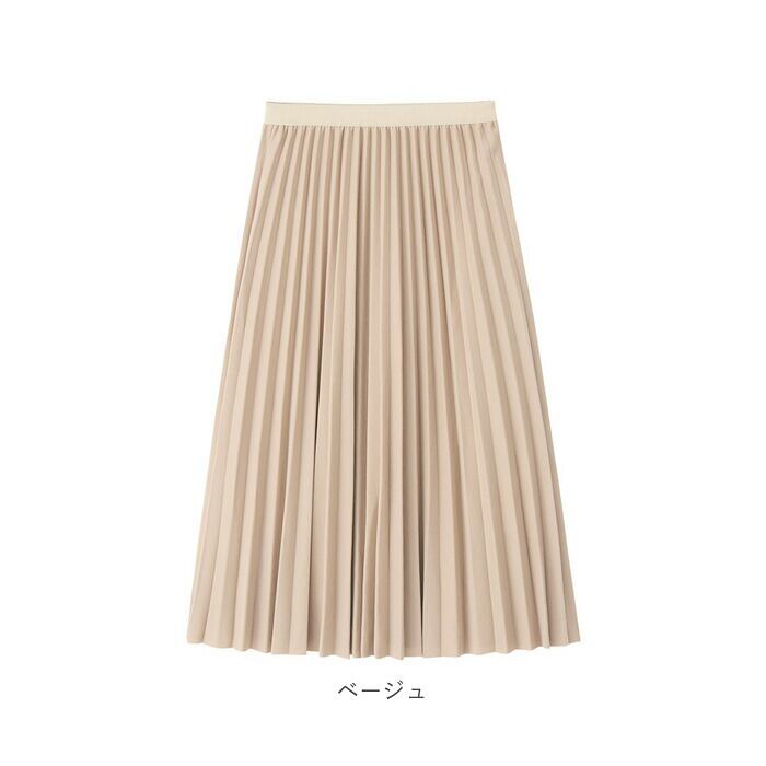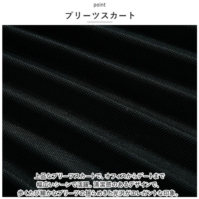 ・上品なプリーツスカートで、オフィスからデートまで幅広いシーンで活躍。清潔感のあるデザインで、歩くたび細かなプリーツの揺らめきと光沢がエレガントな印象。