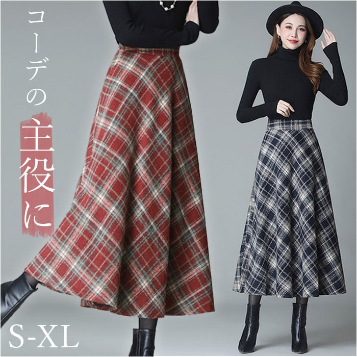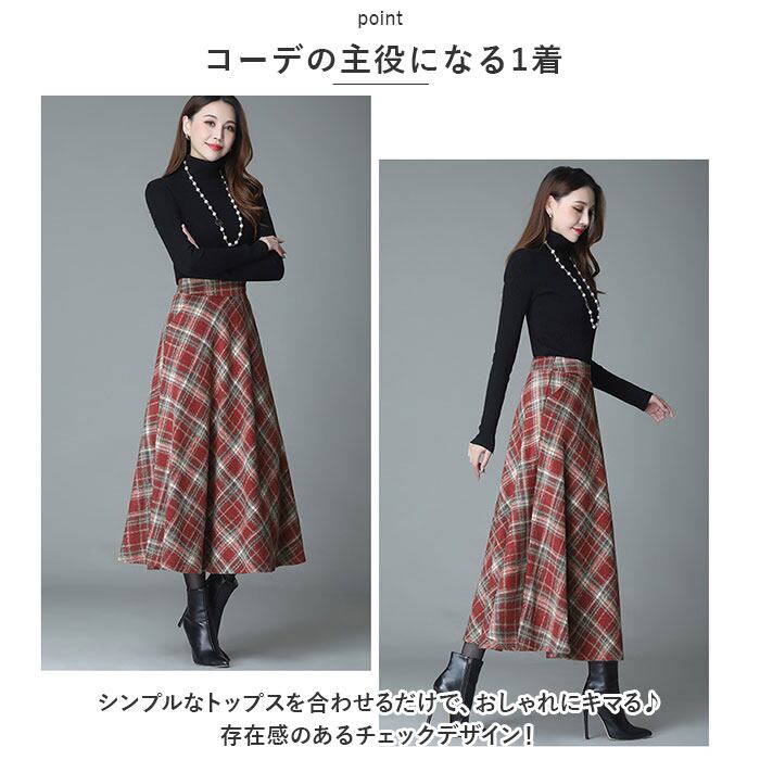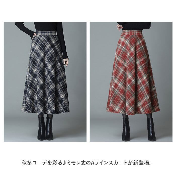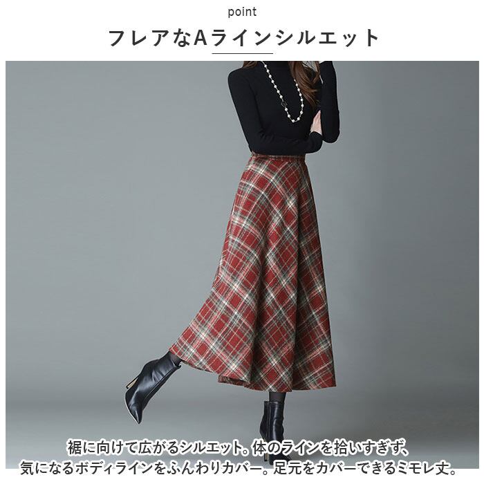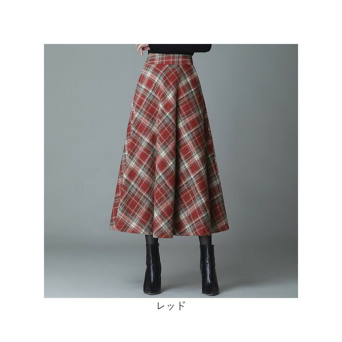 ミモレスカート 柄 スカート 通販 アンブレラスカート フレアスカート フレア Aラインスカート Aライン ハイウエスト ウール ミモレ ミモレ丈 レトロ ロング ロング丈 エレガント レディース チェック チェック柄 ボトムス 冬