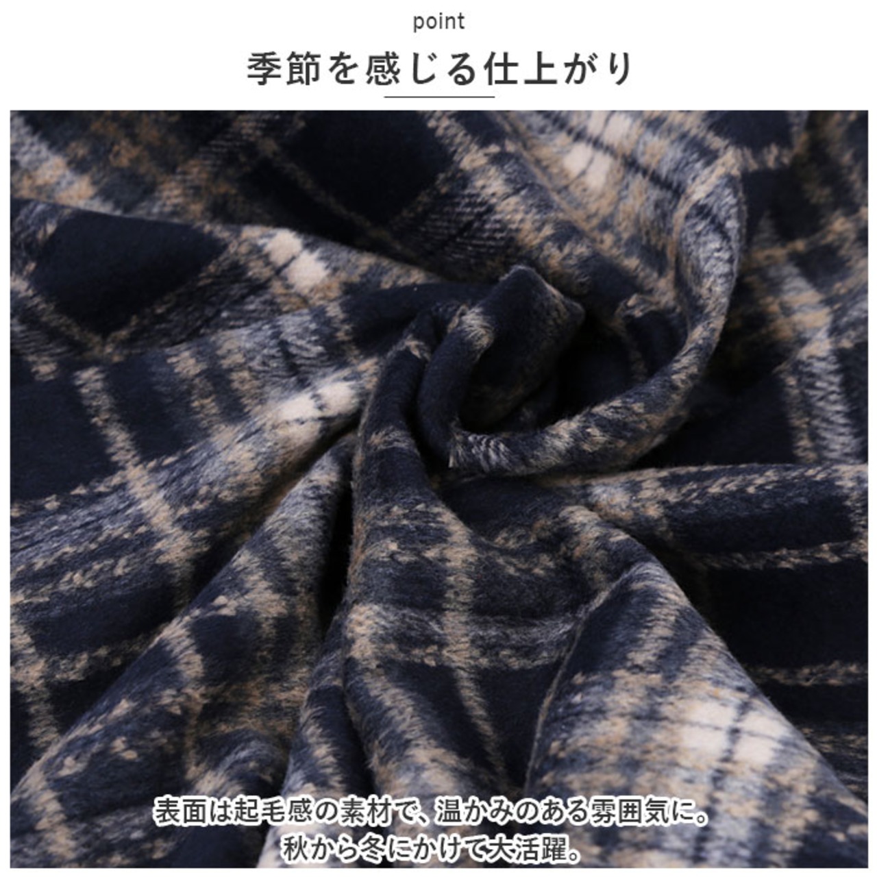 ・表面は起毛感の素材で、温かみのある雰囲気に。秋から冬にかけて大活躍。