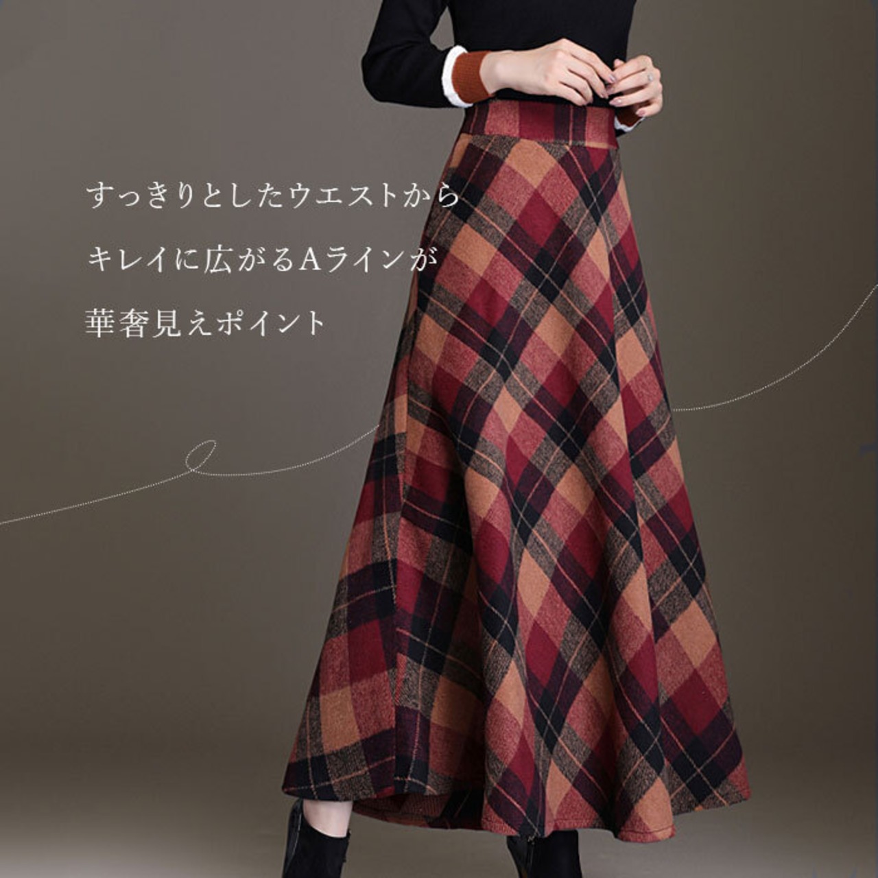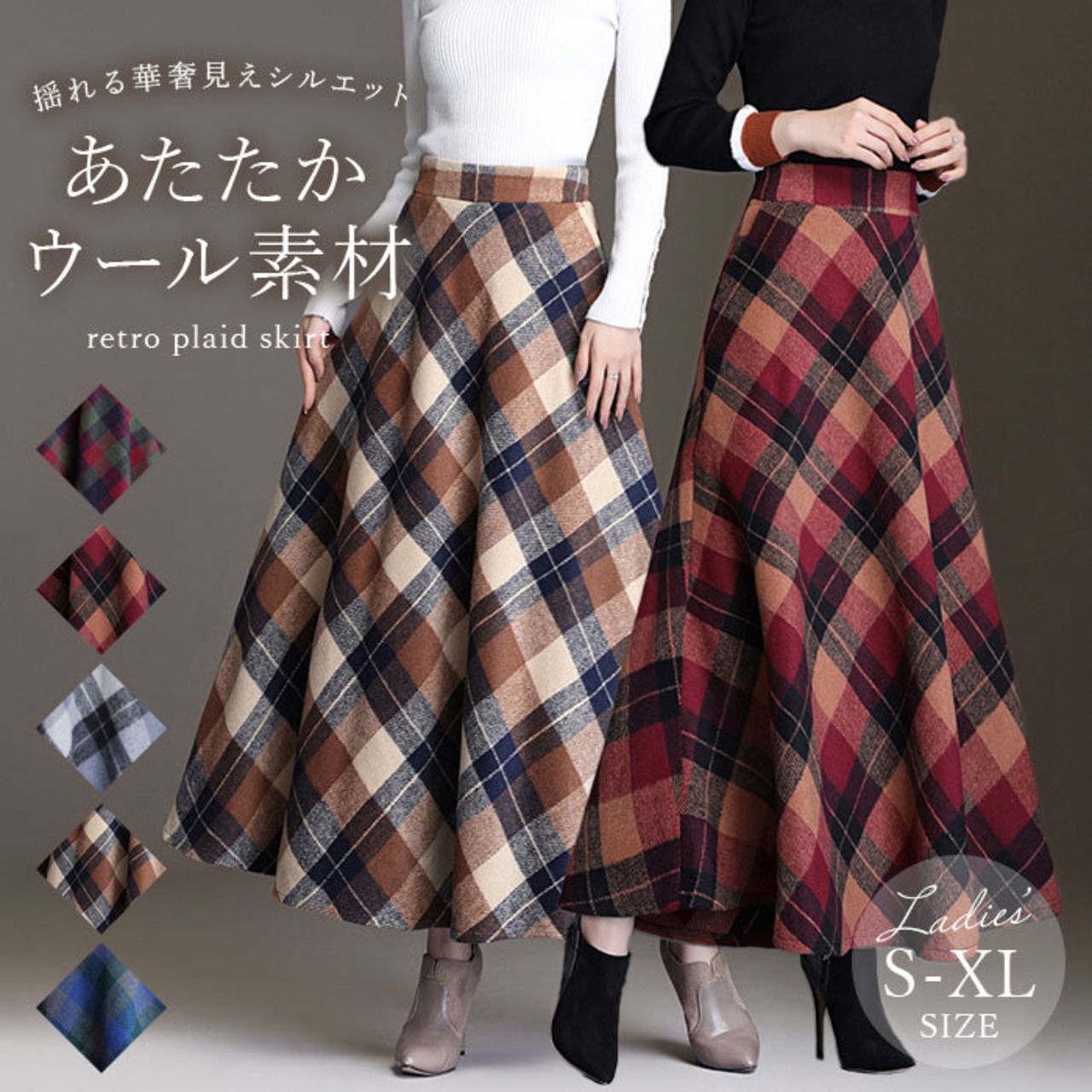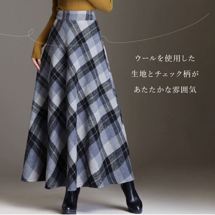 ・ウール使用であったか♪秋冬に大人気のレトロチェック柄が可愛い☆「ロングスカート」が登場。