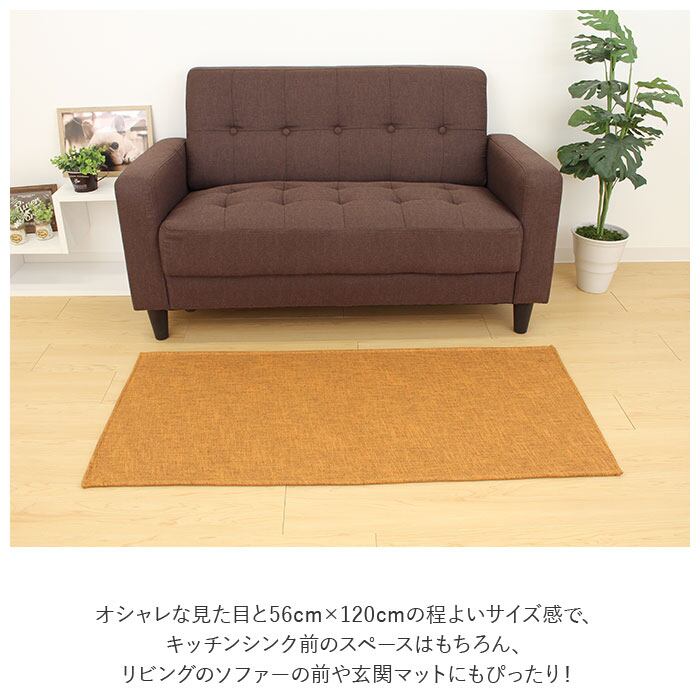・オシャレな見た目と56cm×120cmの程よいサイズ感で、キッチンシンク前のスペースはもちろん、リビングのソファーの前や玄関マットにもぴったり!