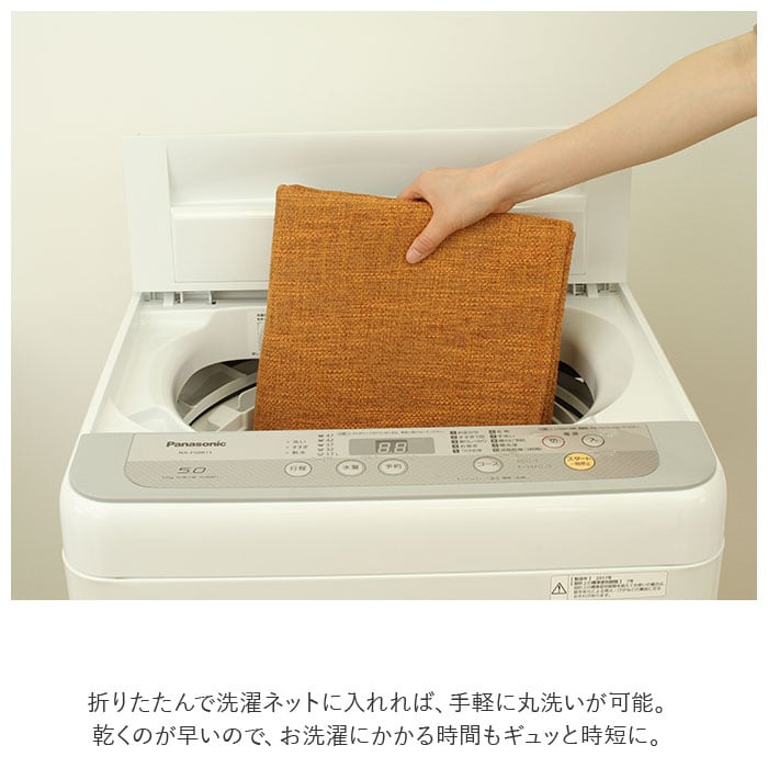 ・折りたたんで洗濯ネットに入れれば、手軽に丸洗いが可能。乾くのが早いので、お洗濯にかかる時間もギュッと時短に。