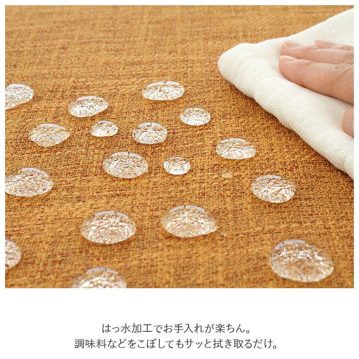 ・はっ水加工でお手入れが楽ちん。調味料などをこぼしてもサッと拭き取るだけ。