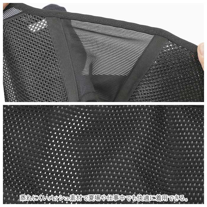・蒸れにくいメッシュ素材で夏場や仕事中でも快適に着用できる。