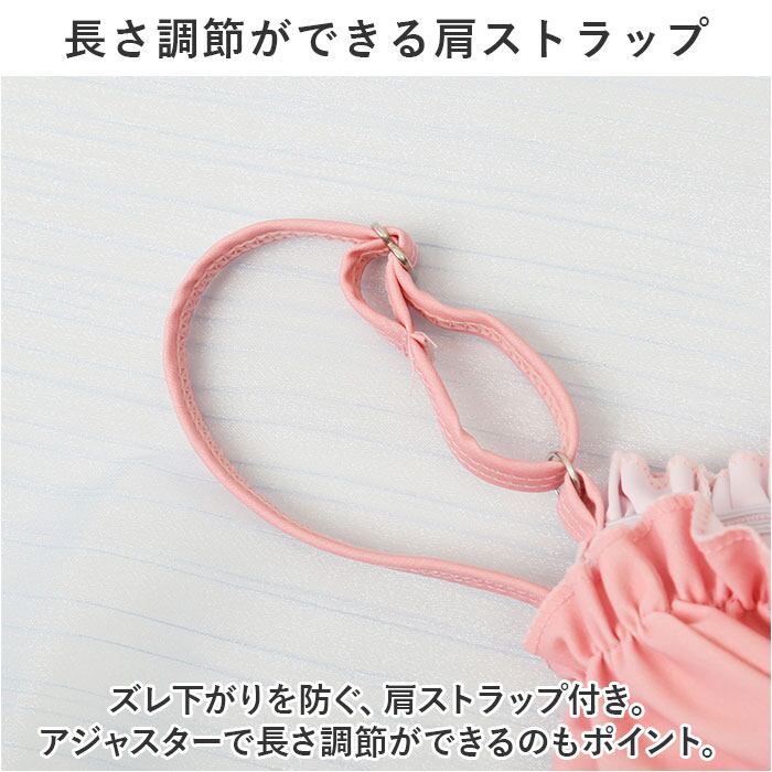 ・ズレ下がりを防ぐ、肩ストラップ付き。アジャスターで長さ調節ができるのもポイント。