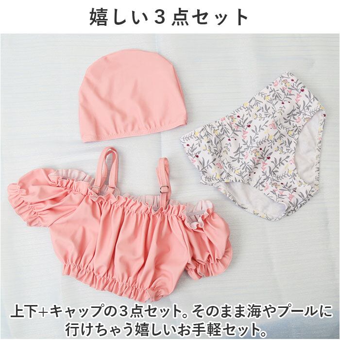 ・上下+キャップの3点セット。そのまま海やプールに行けちゃう嬉しいお手軽セット。